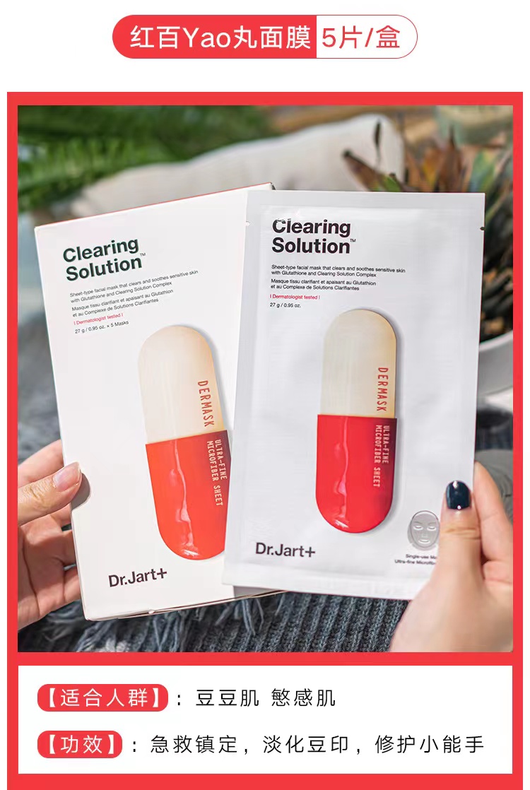 韩国Dr.Jart蒂佳婷 红药丸 微晶清洁面膜 5片装